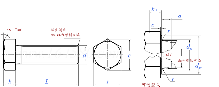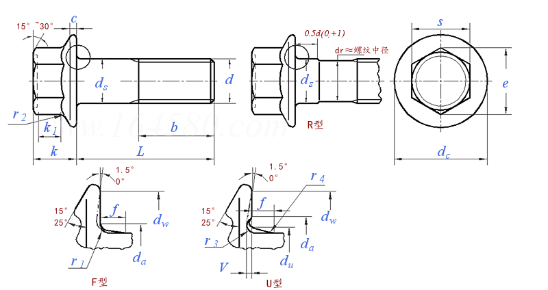 ③ The fillet radius R at the junction of the hex face and the top surface of the flange shall not exceed 0.15 times the nominal diameter of the screw.