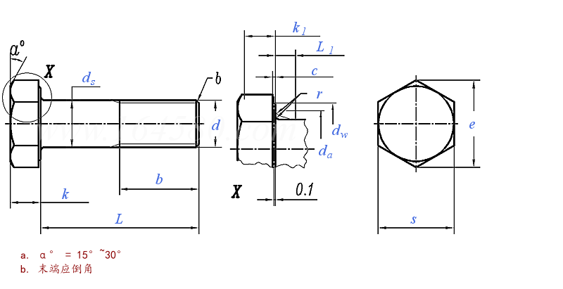 ① The edges and corners of the hexagonal head are permitted to be slightly rounded or blunted.