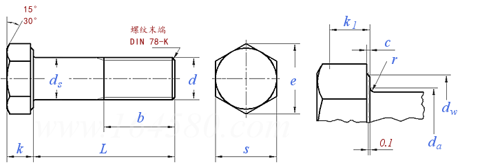 【ANSI / ASME / ASTM / DIN / BS / EN / ISO】 Coarse Thread Non-Captive Bolts and Screws — Hex Head (DIN 931) DIN 7964 (D2) — 1990