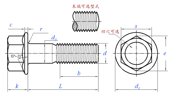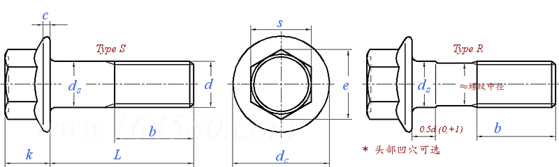 ② The fillet radius R at the junction of the hexagonal head and the top surface of the flange shall not exceed 0.15 times the nominal diameter of the screw.