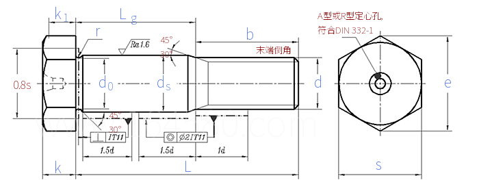 ② Head standard: DIN 931-1.